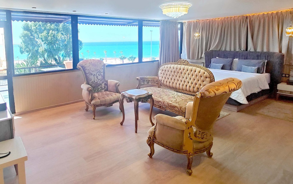 Notre suite la plus prestigieuse vous offre un confort ultime avec des espaces généreux, un mobilier raffiné, une vue imprenable sur la mer, et des services premium. Parfaite pour les occasions spéciales ou les voyageurs exigeants, elle inclut un salon privé, une grande salle de bain et une ambiance exclusive.